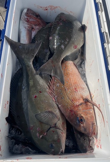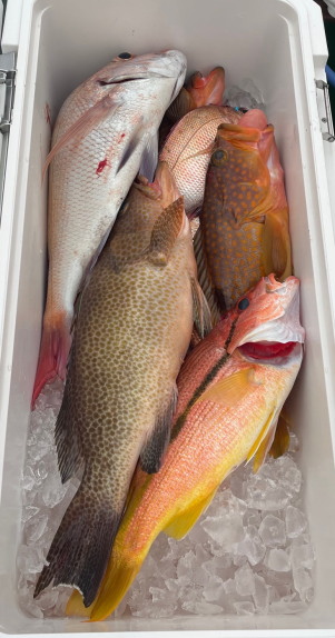 ![]() 船長、大漁・・一番は2kg超のオオモンハタ |