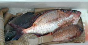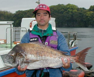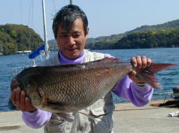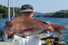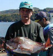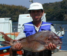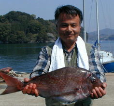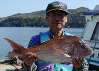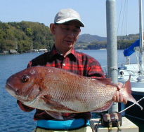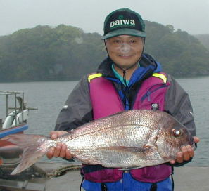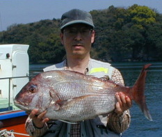 | 結納用にと頑張って釣った良型マダイです。 フィアンセは幸せものだああ。 只松さんの中瀬1番での釣果でした。 |
