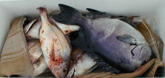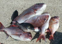 高瀬1番での山野さんの釣果です。 イシダイ2kgとマダイ小が5枚程 釣れていました。 大物2枚は残念ながらバラしたそうです。 |