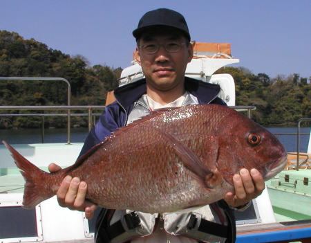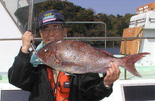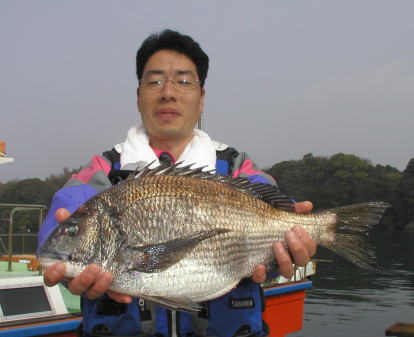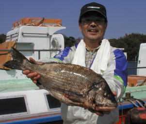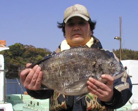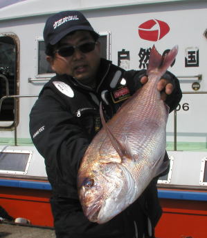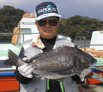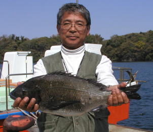 ![]() マダイの部、クロの部共に2位の川本さん。 マダイ2.9kg。クロ1.5kgでした。ポイントは中瀬2番 |