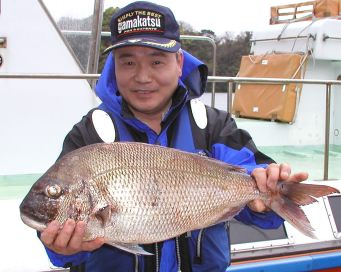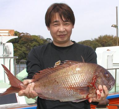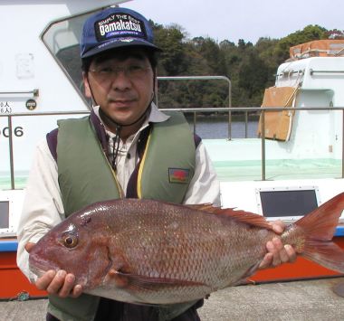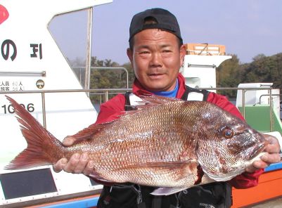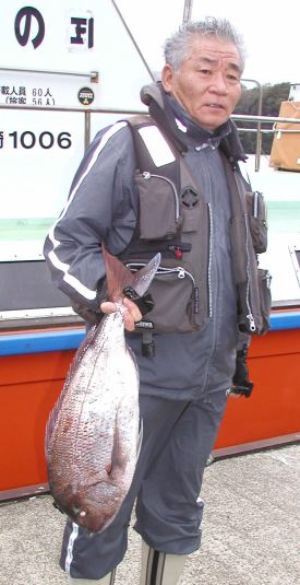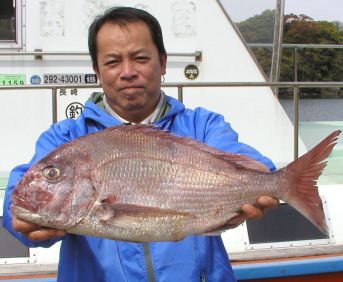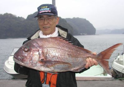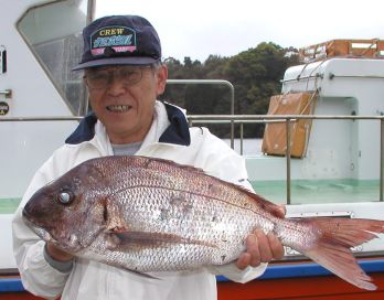 みごとな大マダイ7.8kgを釣った前田さんです。おめでとうございます。 |