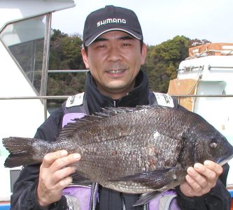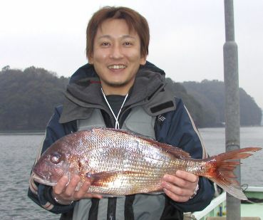 木稲勇次さんはお子様の入園式のお祝い用にプレッシャーに負けないで釣りました。西瀬3番で2.7kgなり。 |