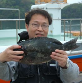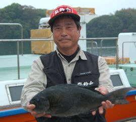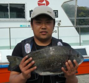 チヌの部同重量で優勝した上島さんはクロも釣っていました。1.5kgなり。大立島東の北 |