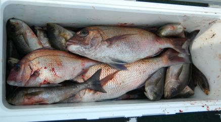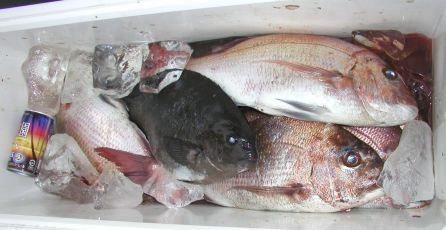長下さんのクーラー 下のほうには良型イサキも入っていました。 |