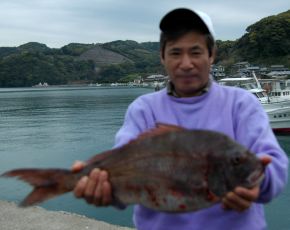 写真掲載が遅くなって申し訳ありません。一の瀬さんが小立島南東で釣った大物です。 |