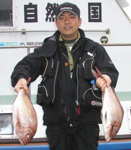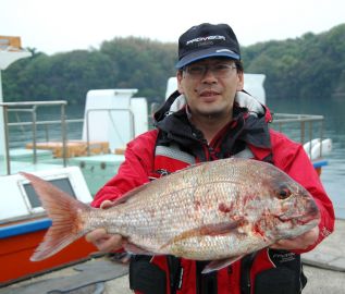 前線が夜に通過する悪天候でしたが、中瀬の北側では真鯛が良く釣れていました。