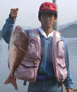 | 今週の大物賞は本田さん。 5.5キロのマダイを 大立東の玄関で釣りました。 |