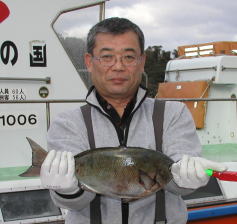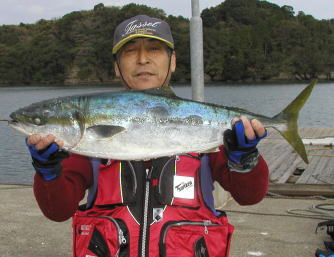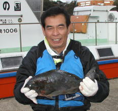 | 相川さんも大立島南で1.5kgを釣りました。 | 松岡さんは中瀬で1.5kgクラスを2枚釣っています。3番かな? | 7キロ級のマダイと思った当たりは4.5kgの立派なブリでした。東さんが高瀬でゲット。 |
