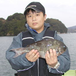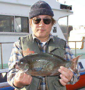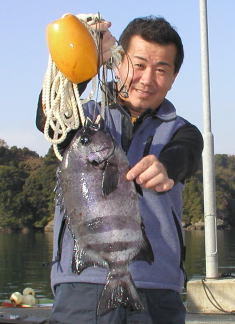 ![]() 本田さんは広場で食べごろマダイと1.5kgのクロを釣りました。 |