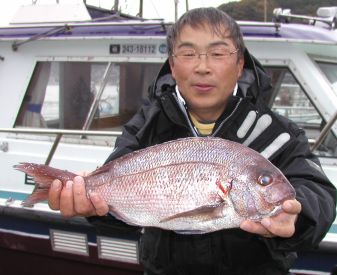 稗田さんは昨年の記録19枚を超す今年20枚目のマダイだそうです。西瀬2番。 |