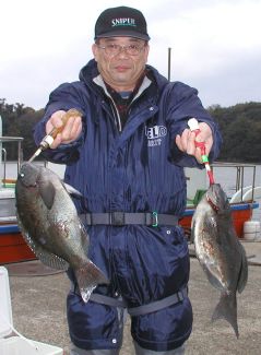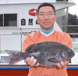 川田さんも良型クロを大立島南の東でゲット。 |