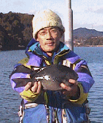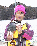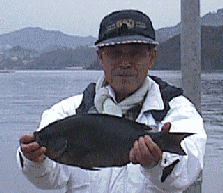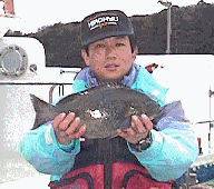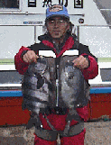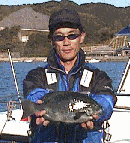 川田さんもキロオーバーを2枚釣りました。 | 岩下さんのキロジャスト のクロ。 ポイントは大立南です。 |