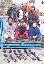 川久保サングループです。昼釣り、夜釣り両方やりましたが、夜は眠ってしまったそうです。それでもこの釣果。 |