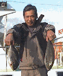 | キロオーバーを3枚釣った岸川さん。 ポイントは大立東のハナレです。 |