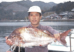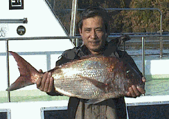 | 4.7kg の大型マダイでした。 徹夜したかいがあった長下さんです。 ポイントは大立南のウラ |