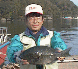 昼間の今年一番の大物です。中瀬3番で1.7kgでした。 釣り人は中村さん。 |