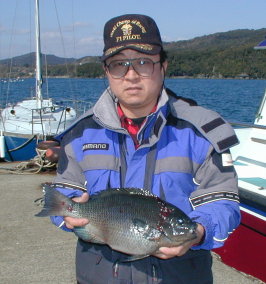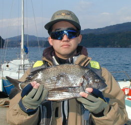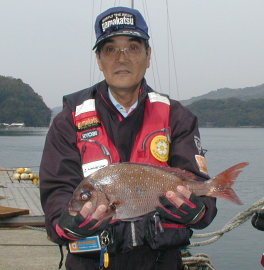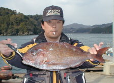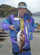 番外 マダイ2.0kgを釣った伊東さんです。伊東さんはエギを投げて立派なミズイカも釣っていました。 |