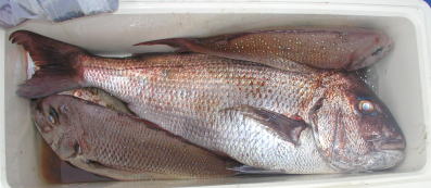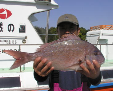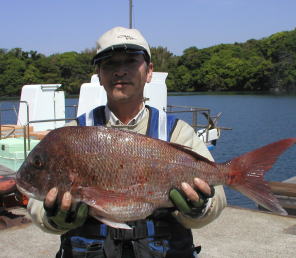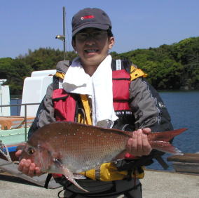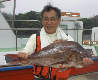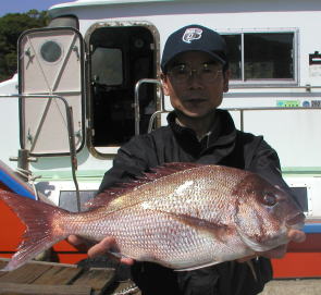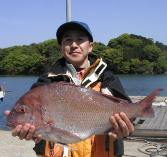 ![]() 高瀬1番で好釣した樫山さんは2.1kgのマダイをゲット。 |
