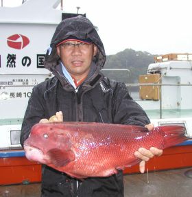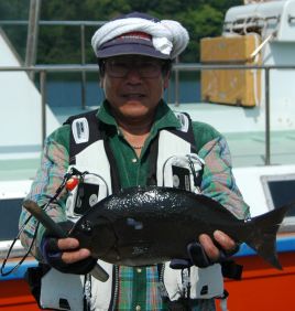 大立島東の北の北側入り江で8.6kgの大物を釣り上げました。只松さんは殿堂入り2枚目です。次に大きかったのは大立島南