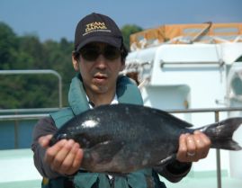 平均くらいは釣れているのに、今年は3人で1枚くらいの確率でした。ただし2日には只松さんが竿のトラブル中ににもかかわらず