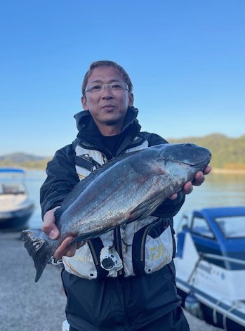 ![]() 汐好会の秋の大会、優勝した尾上さん。 小立島東で45.5cm |