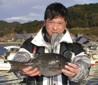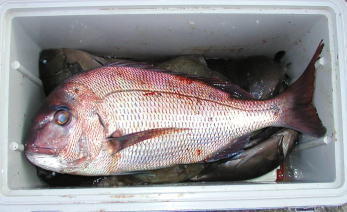 ![]() 水川さんは小立島で1.6kgのマダイを釣っていました。 |