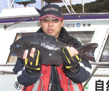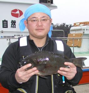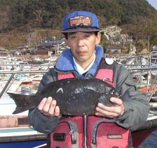 私も初釣りを行いました。ポイントは小立島西のワレです。なんとクロが3枚も釣れちゃいました。一番は1.3kgでした。