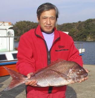 浅田さん 1.5kg 大立島東の北 キロオーバーを6枚釣っていました。棚は2ヒロだそうです。 |