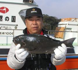 おみごと2kgの地グロです。出口さんが大立島南の西で釣りました。 |