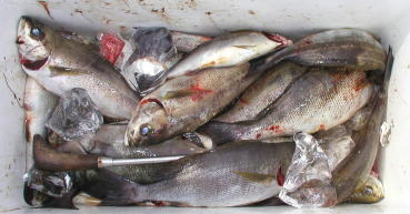![]() 一番のスズキは川原さんが釣った2.6kg。中瀬1番 |