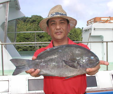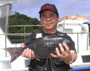 ![]() 一番のクロは大西さんが釣った1.9kg。小立島西渕 |