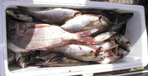 ![]() 一番のイサキは石川さんが釣った1.0kg。大立島広場 |