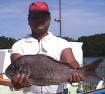 | 大漁のイサキに加えてキロオーバーのクロをゲットした杉本さん。 ポイントは中瀬4番 |