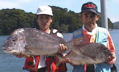 2位 渡辺光雄さん(写真右) 伸一さんのお父様です。親子でアベック入賞とはおみごと!お父さんのマダイは3.2kgでした。 |