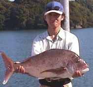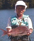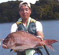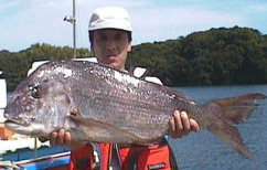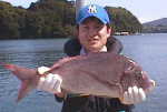 | 西さんはマダイ3.9kgも釣っています。これまたミノーで釣ったそうです。 | 坂本さんが釣った2.7kgのきれいなマダイです。これも中瀬4番での釣果。 | 渡辺さんはコロダイまで釣りました。 棚1ヒロ半でコロダイとはオドロキ・・・ 2.2kgでした。 |