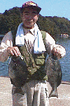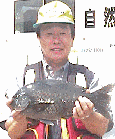 | みごと自然の国杯を手にした渡辺伸一さん。 7.2kgの大物を大立玄関で釣上げました。 |