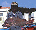 小立北で2.6kgのマダイを釣った内田さんです。 イサキも結構釣ってました。 |