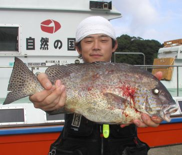 磯釣り初挑戦?の久富さんが釣ったコロダイです。 ものすごい引きだったでしょうね。 |