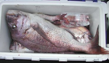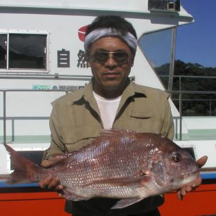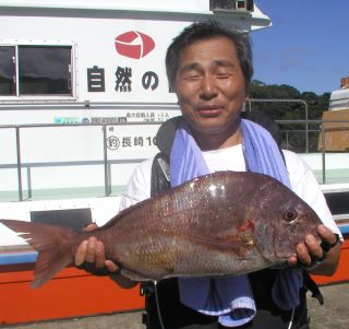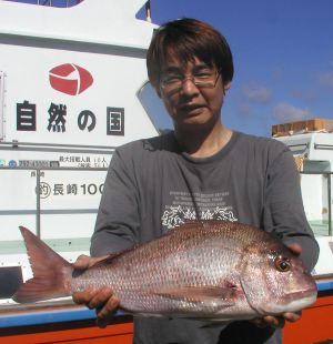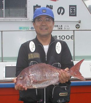 藤瀬さんがイサキに混じって釣ったマダイです。中瀬4番 |