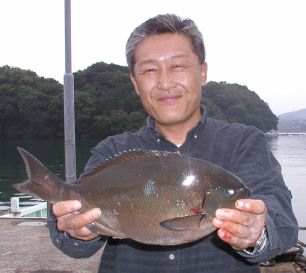 今回の大物賞は久米さんです。大立島南の西の裏にて5kgなり。 |