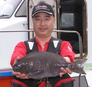 荒川さんのクロは2.2kgの大物です。中瀬4番なり。 |