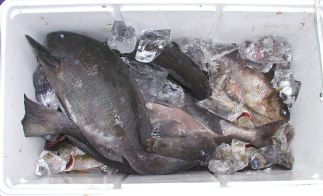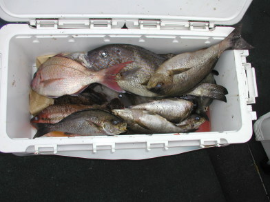 コロダイ以外にもイサキ、マダイが釣れていました。 |
