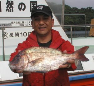 昼釣りでイサキトマダイを釣った山下さん 小立島北 |