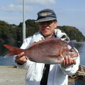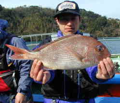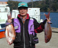 | 森山さんのマダイは小立南の東産。 大物ではありませんが、綺麗な色をしています。 春も近い! |