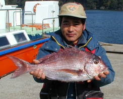 | 小立東での藤原さんの釣果です。 とても色鮮やかな食べごろマダイです。 |