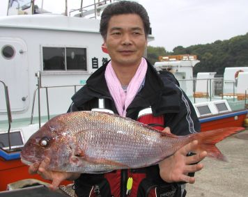 は西のハナで3枚のマダイを釣っていました。西の北では2.1kgの立派なクロが釣れています。