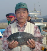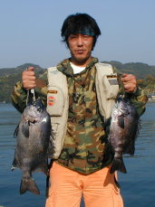 | 小立東で大型クロ1.65kgとマダイを釣った牛島さんです。 | マダイは検量していただけませんでした。 |