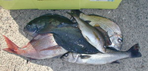 岩井さんの釣果です。イサキ、スズキも混じっていました。 |