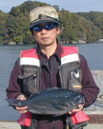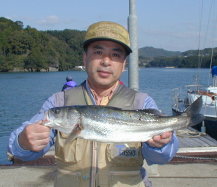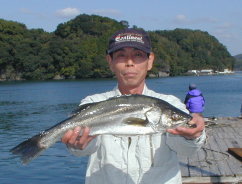 | 大会他魚の部優勝の只松さんです。 スズキ64.5cmでした。 |