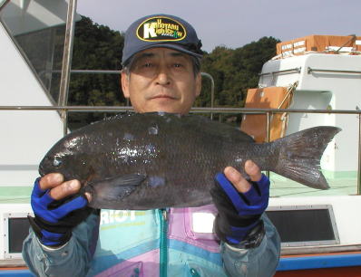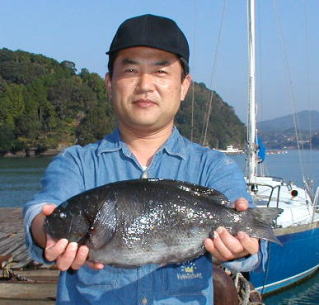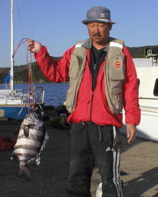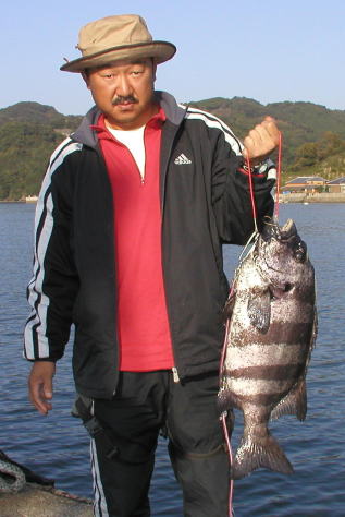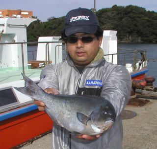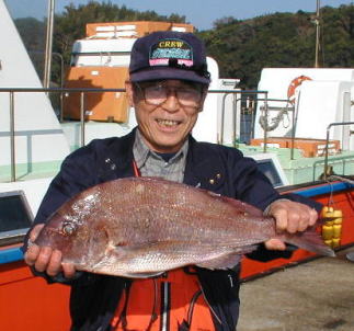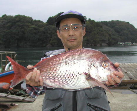あまり大型のマダイが釣れないなか、頑張ったのは 本田さんです。大立島広場で2.6kgを釣りました。 |